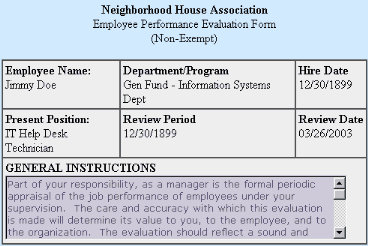 The Employee Information displayed is derived from the Human Resources Database. The Employee data is not a part of the Evaluation program. If any of the information is incorrect please contact the Human Resources Department.